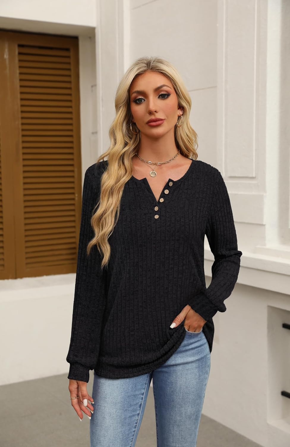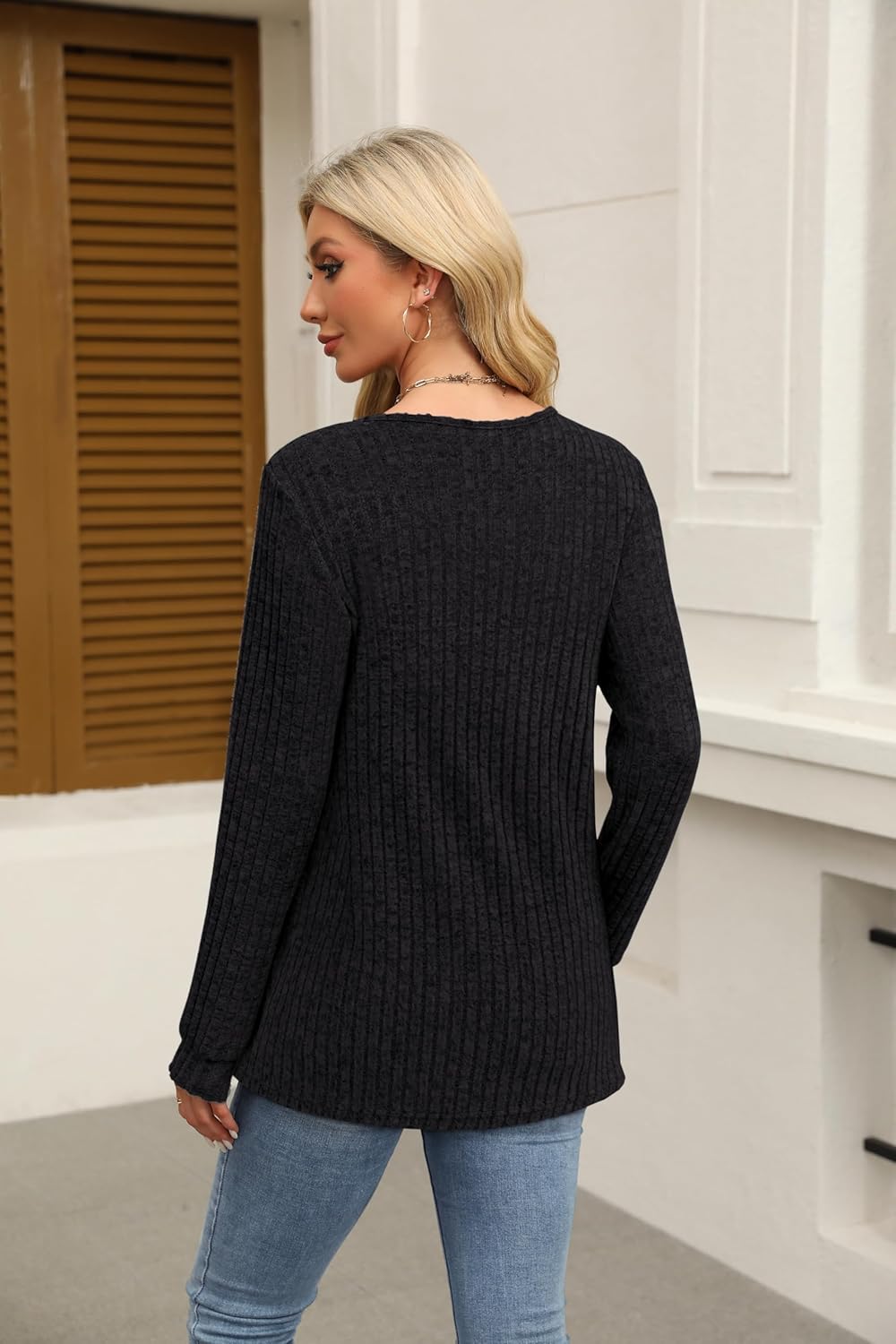 XIEERDUO Sweater for Women Long Sleeve Henley Shirts Tunic Tops to Wear with Leggings crew neck Sweaters Trendy 2024