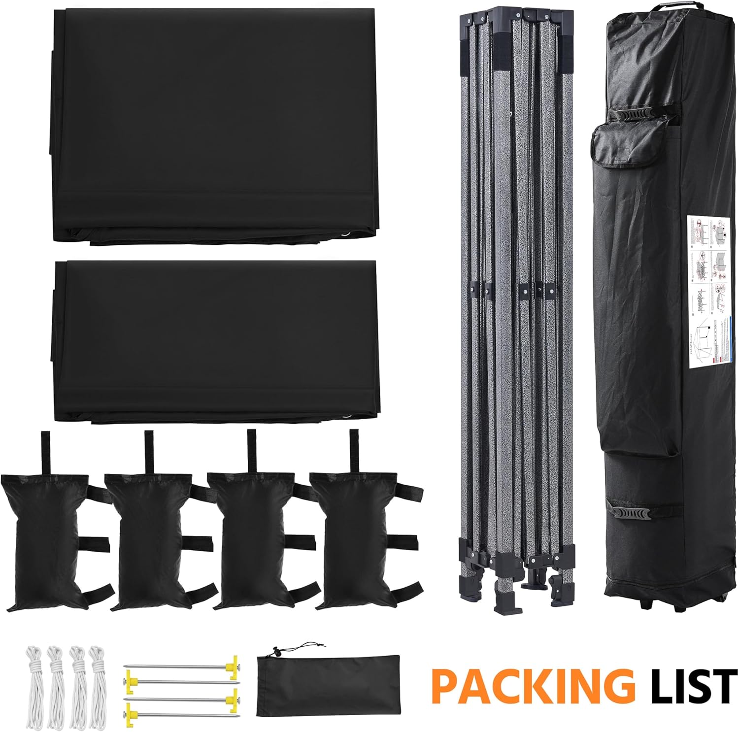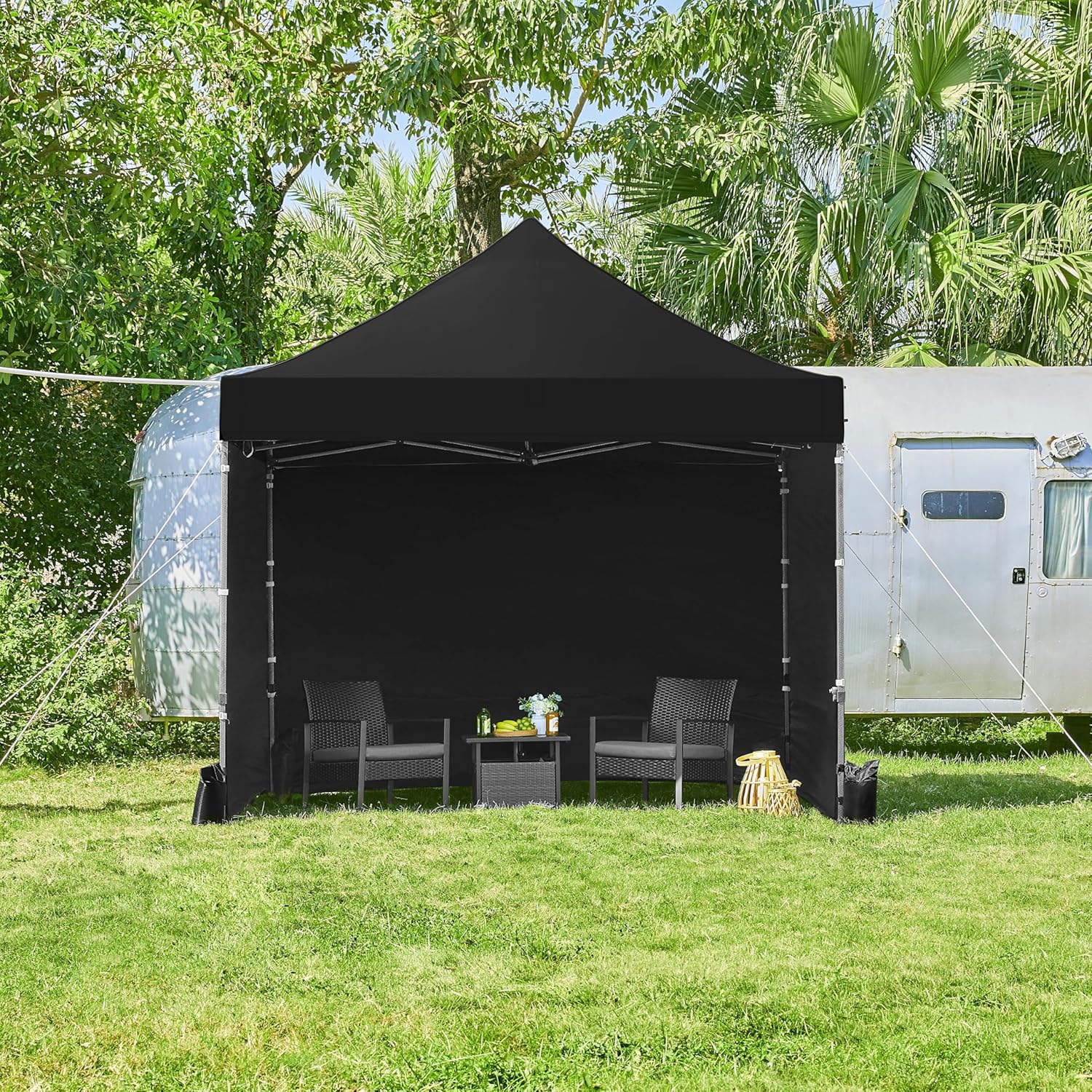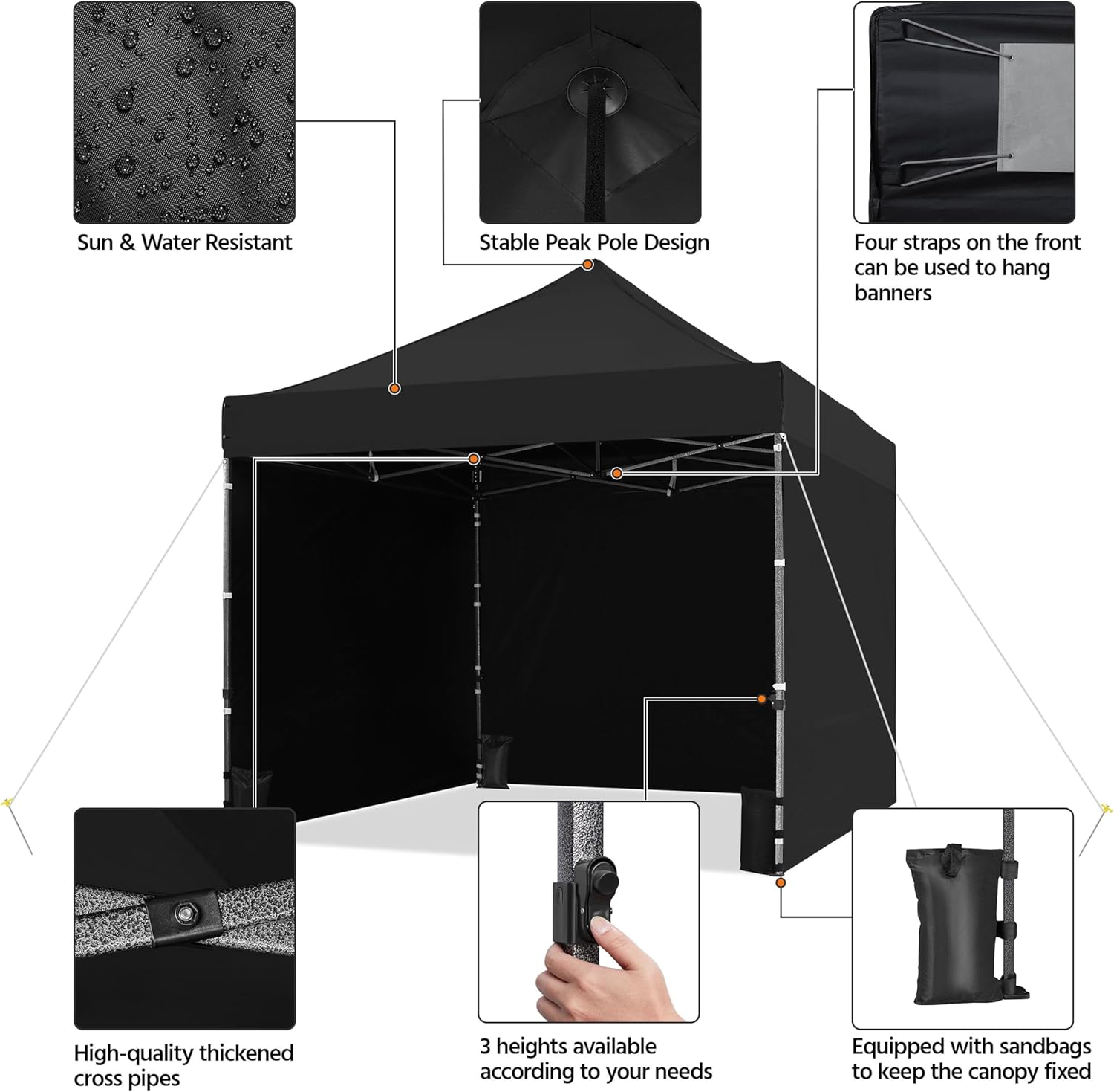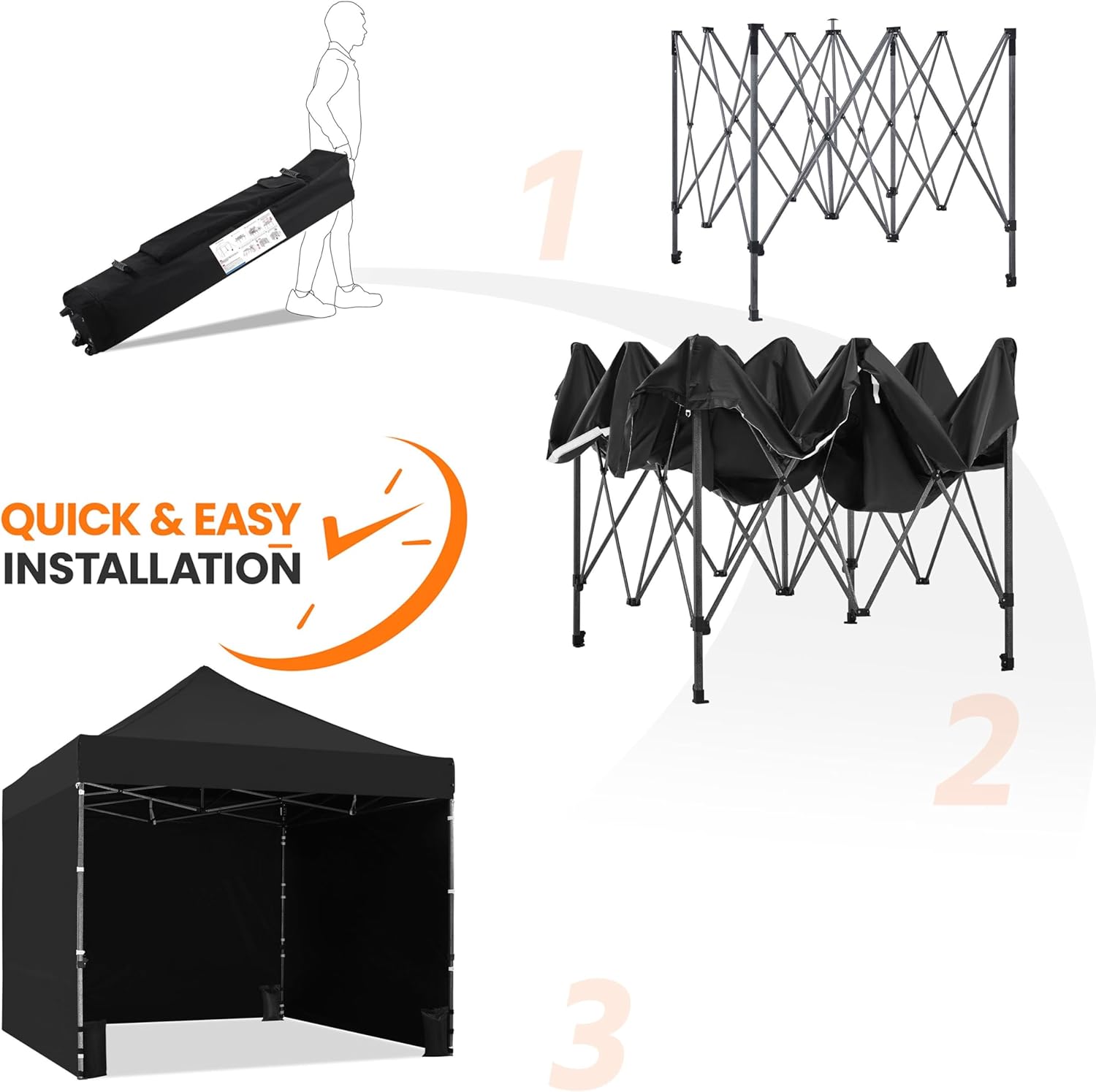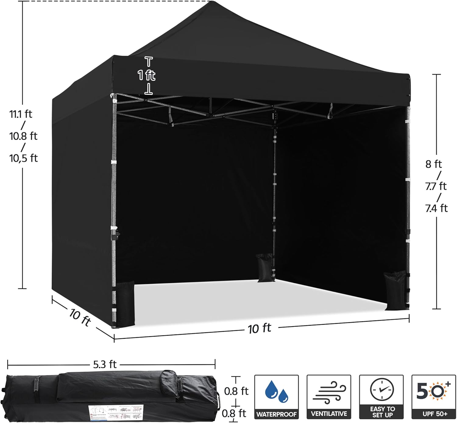 Yaheetech 10×10 Pop Up Commercial Canopy Tent with 3 Removable Sidewalls, 4 Sandbags, Stakes & Ropes, Waterproof Instant Canopies for Wedding Party Commercial Event Pavilion, Black