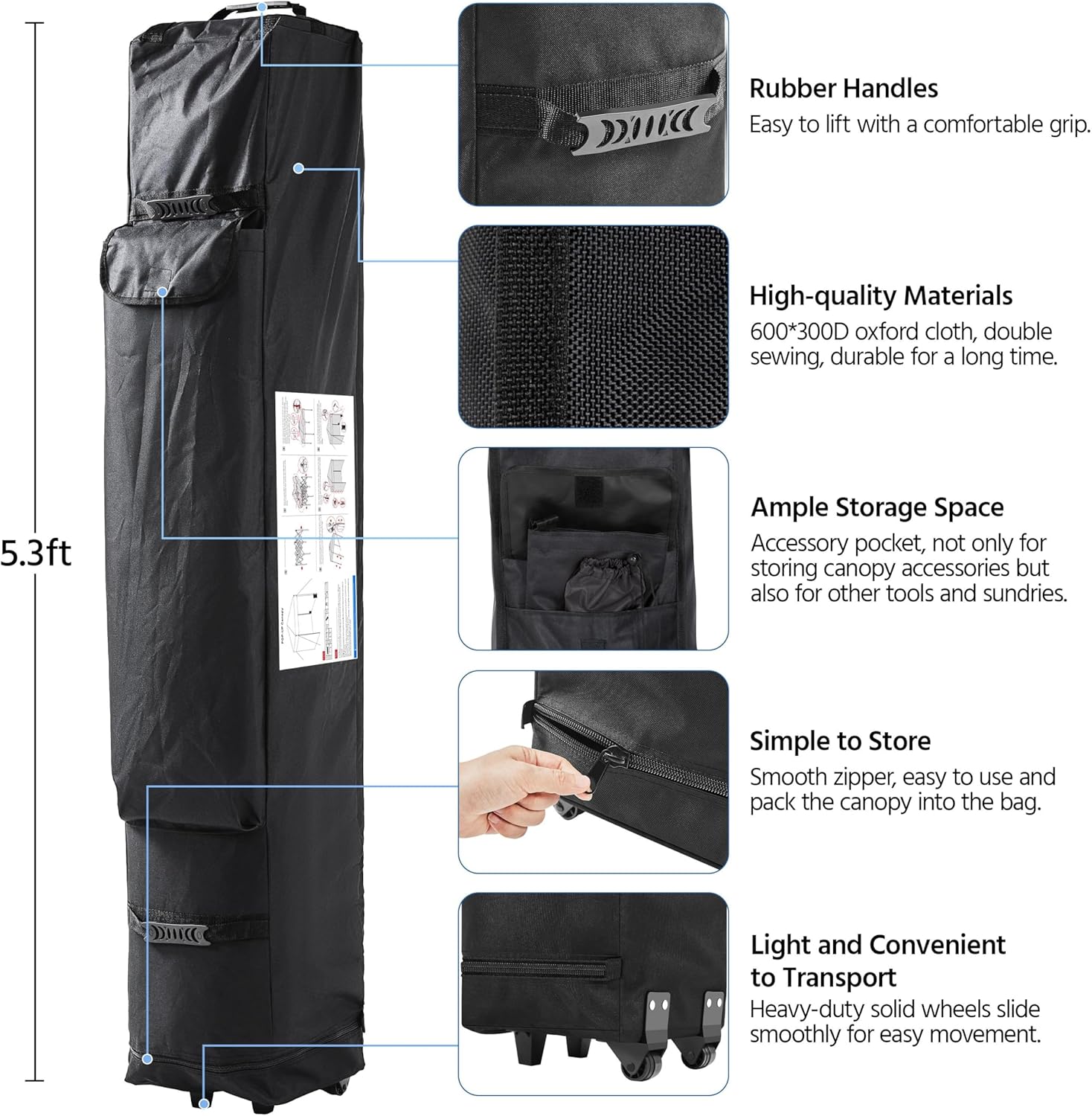 Easy Transport With Roller Bag: For added convenience, this outdoor pop-up tent can be compactly stored or transported in a 10.2″ L × 10.2″ W × 64″ H roller bag. The bag features two rubber handles on the side for a comfortable grip and easy pulling