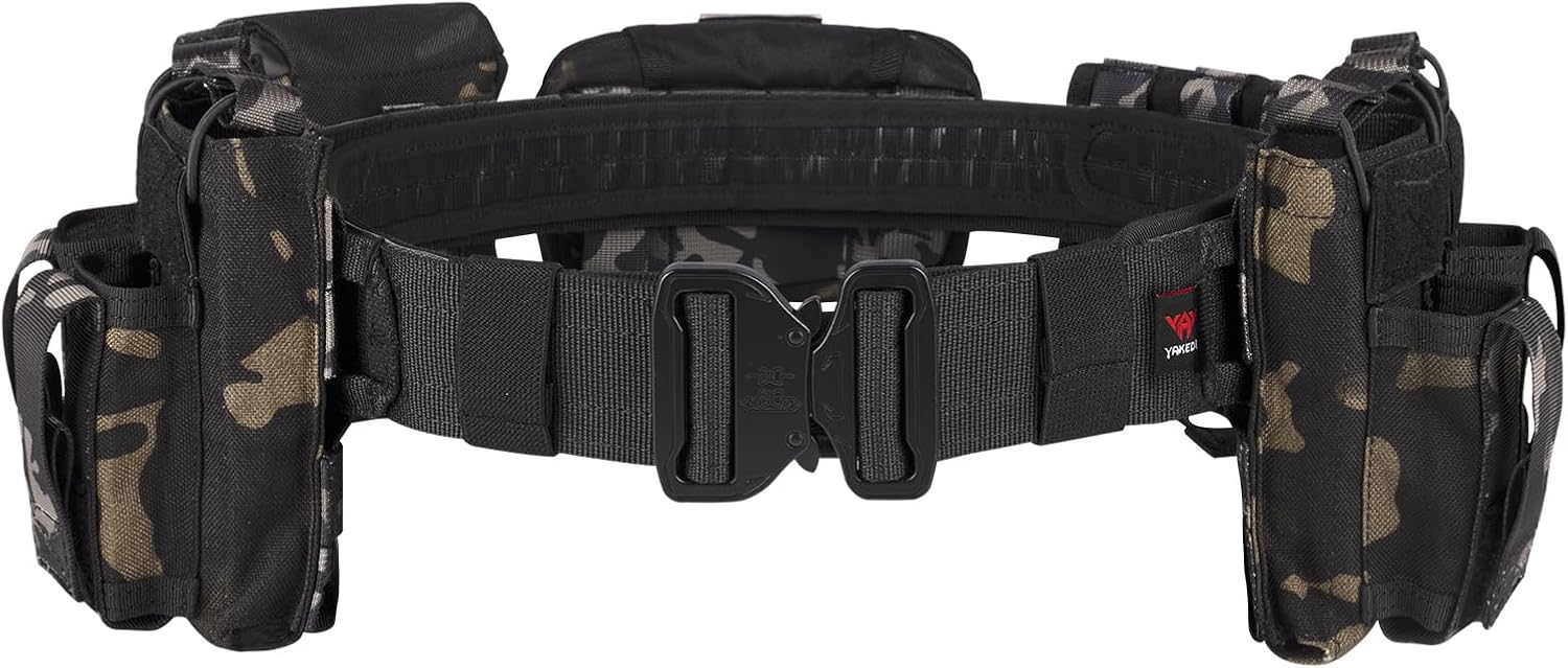 YAKEDA Tactical Battle Belt 7 in 1 Tactical Duty Belts Law Enforcement Airsoft Utility Belt with Accessories Pouches