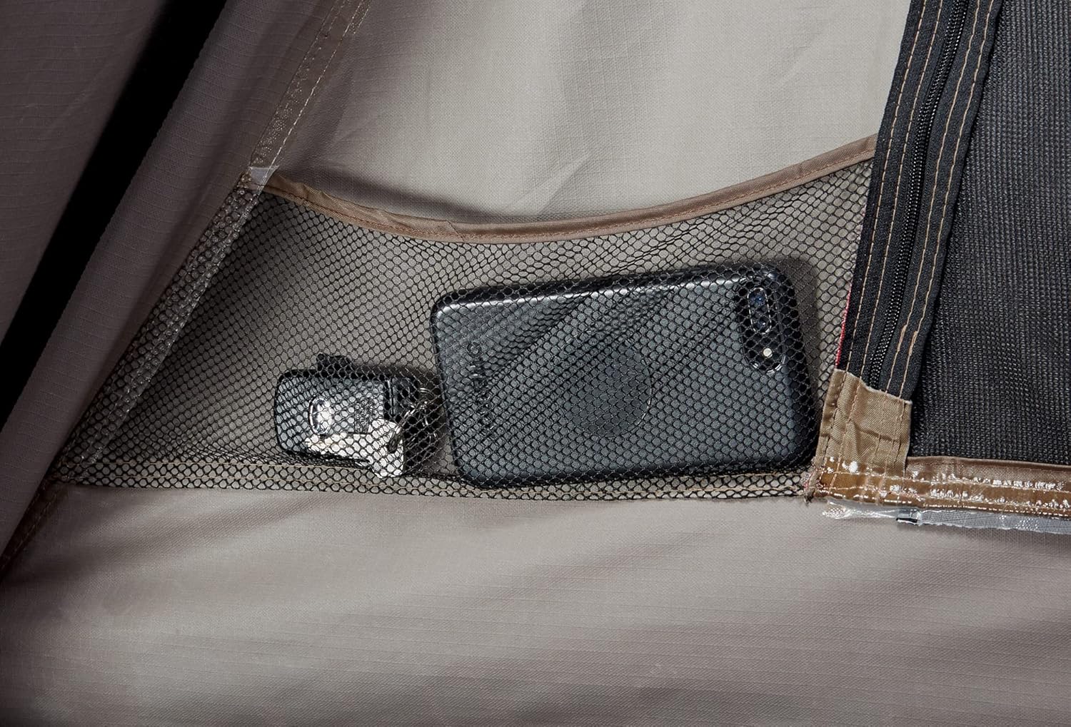 Year-round protection with 600D ripstop polyester and 3000-millimeter PU coating; Rainfly with 210D ripstop Polyester and 3000-millimeter PU waterproof coating