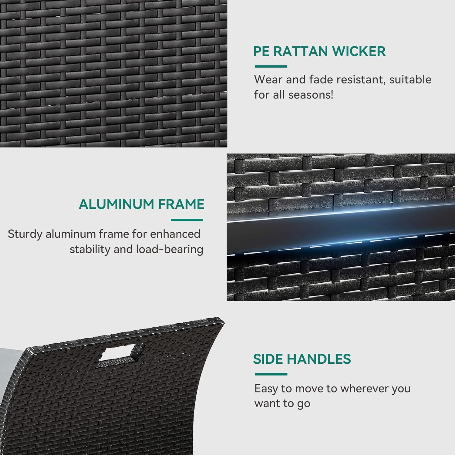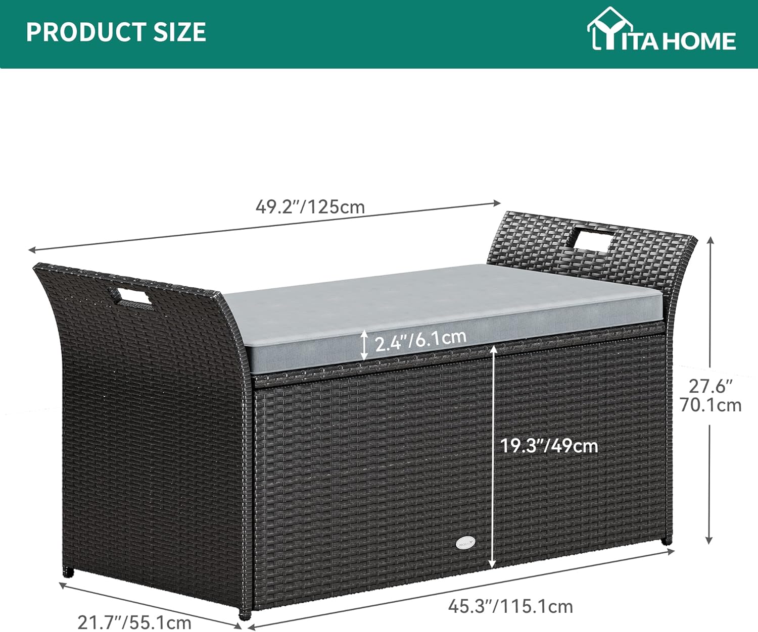 Functional design- This wicker patio storage box features side handles for easy movement to your patio, yards, lawns, poolside, balconies, etc.; Premium pneumatic rods enable the top to completely open and shut slowly with minimal effort – easy use for even kids and prevents smashed fingers.