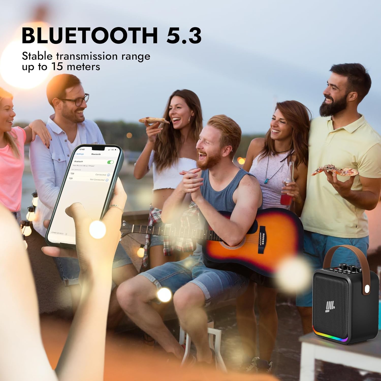 Connectivity & Compatibility: Adopting upgraded Bluetooth 5.3 chip, faster pairing speed, more stable transmission and longer connection distance 15 meters. The sound quality is almost lossless, ensuring compatibility with a wide range of devices such as cell phones, iPad, tablets and computers. Once paired, subsequent connections will be established automatically. It also supports USB, Micro TF card, 3.5mm AUX, 6.35mm Wired microphone and instruments input, such as guitar,drum,etc