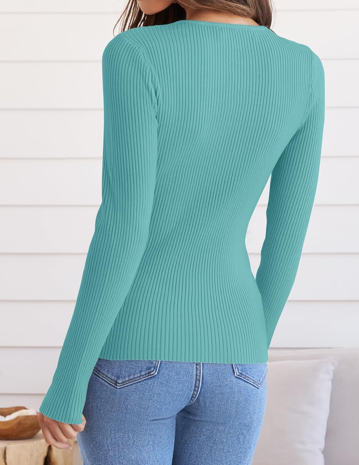 ZESICA Women’s Basic Long Sleeve Shirts Slim Fit Ribbed Knit Tops