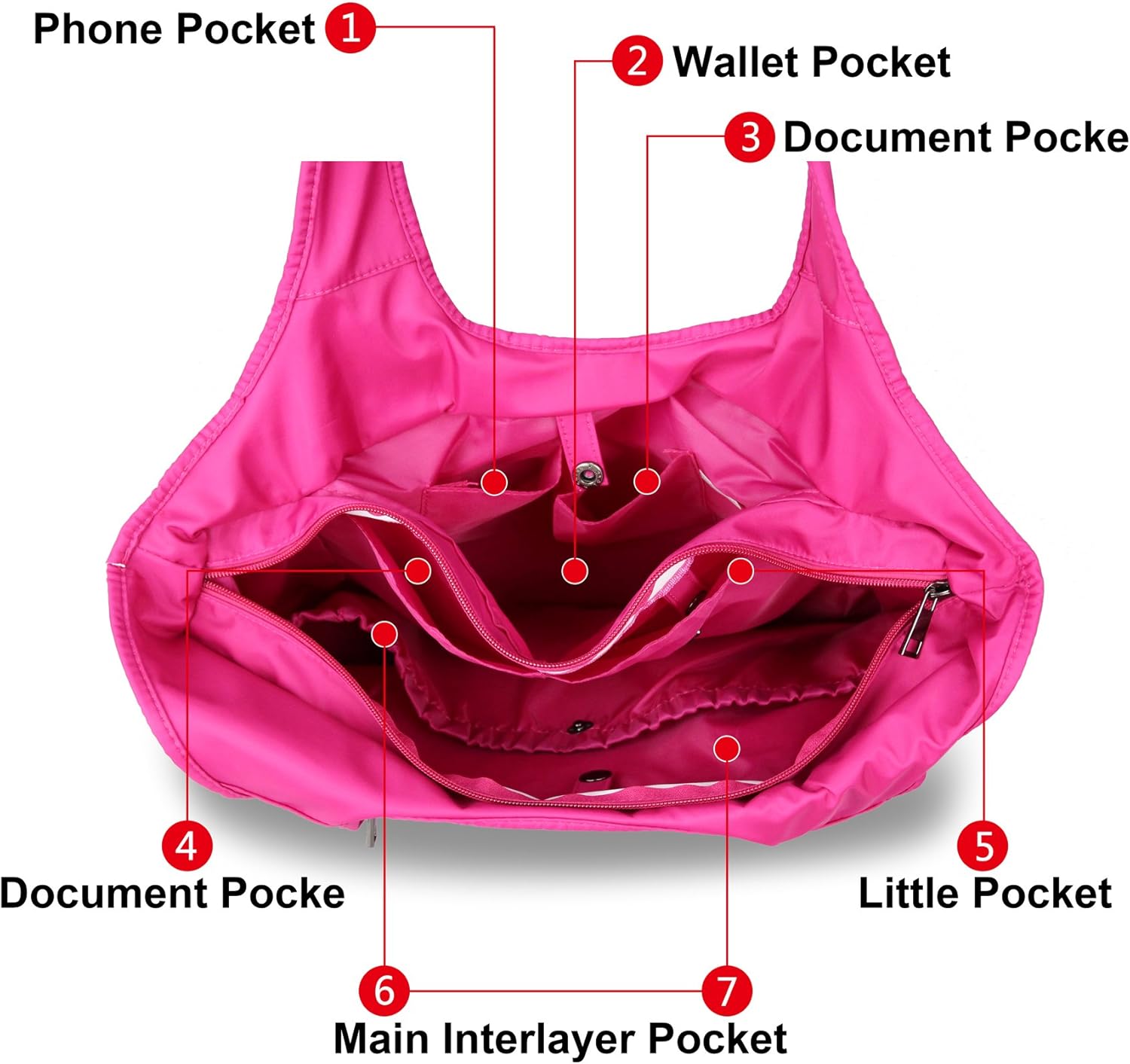 ZOOEASS Women Fashion Large Tote Shoulder Handbag Waterproof Tote Bag Multi-function Nylon Travel Shoulder